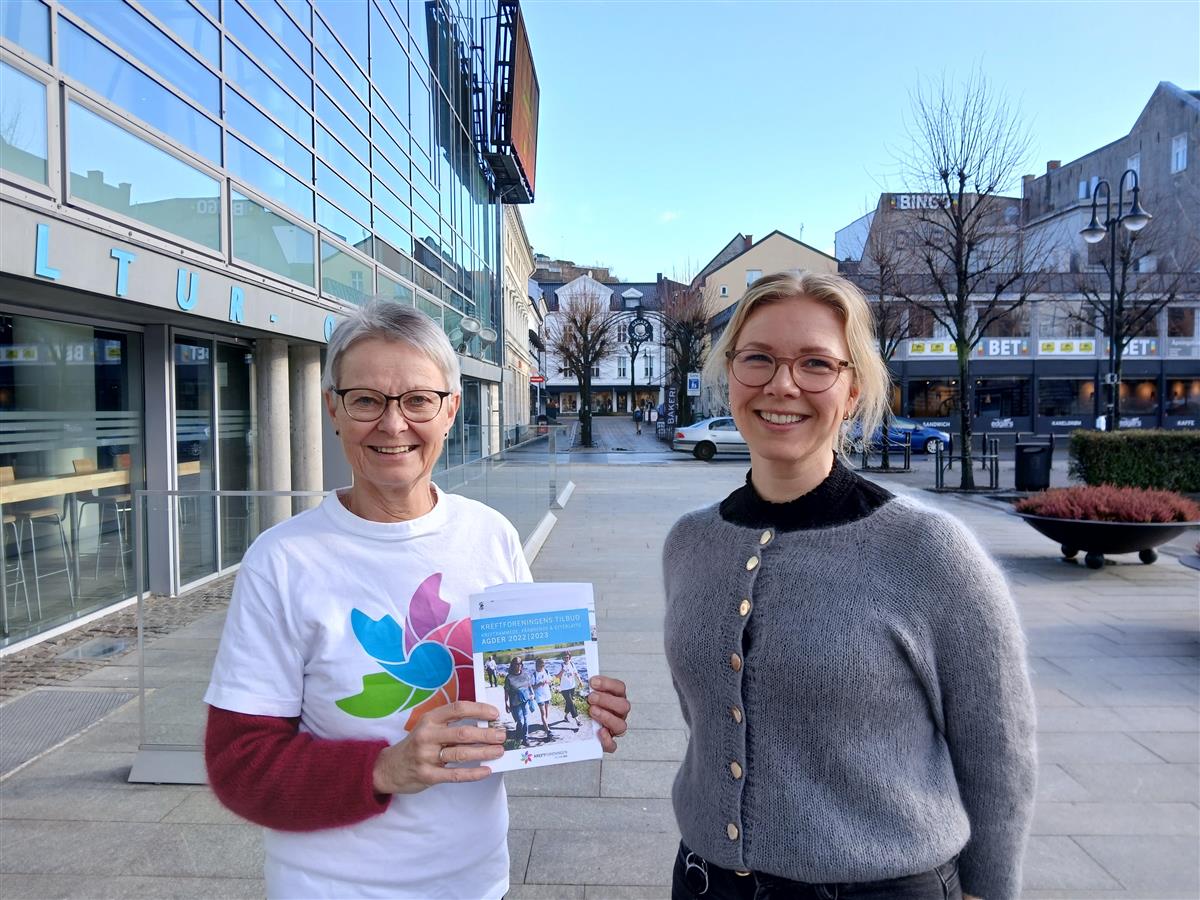 Kreftkoordinator Hanne Syvertsen Fosseli i Arendal kommune og frivilligkoordinator i Hverdagshjelpen, Grete Værland.Slik får du hjelp