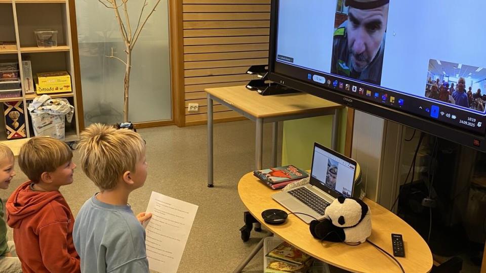 Quiz med Kompani Lauritzen Onsdag hadde 2.klasse en litt spesiell underholdning til lunch. De fikk nemlig ha quiz med Oberst Dag-Otto Lauritzen og major Kristian Ødegård!