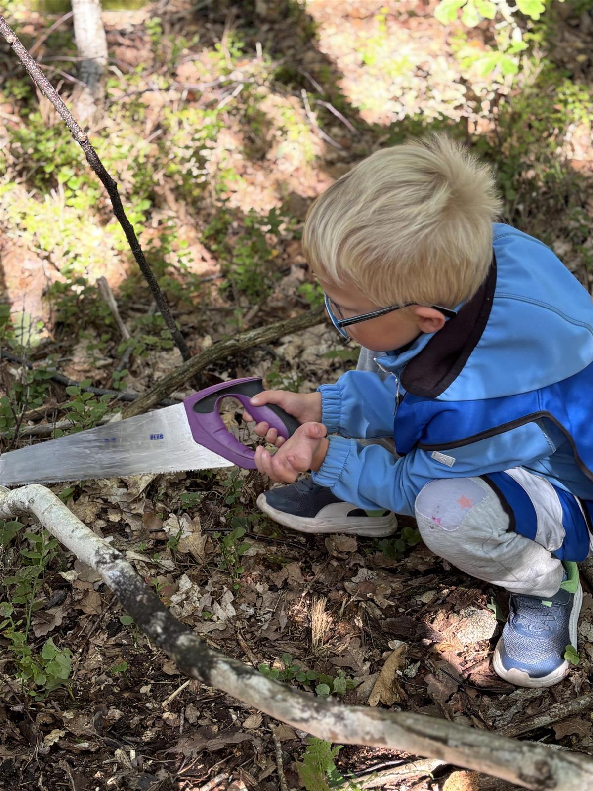 På Svartskjær, barnehagens førskolegruppe, er barna glad i å sage og snekre. Dette er aktiviteter som kan gjøres både i barnehagen og på alle de fine turene våre i naturen.