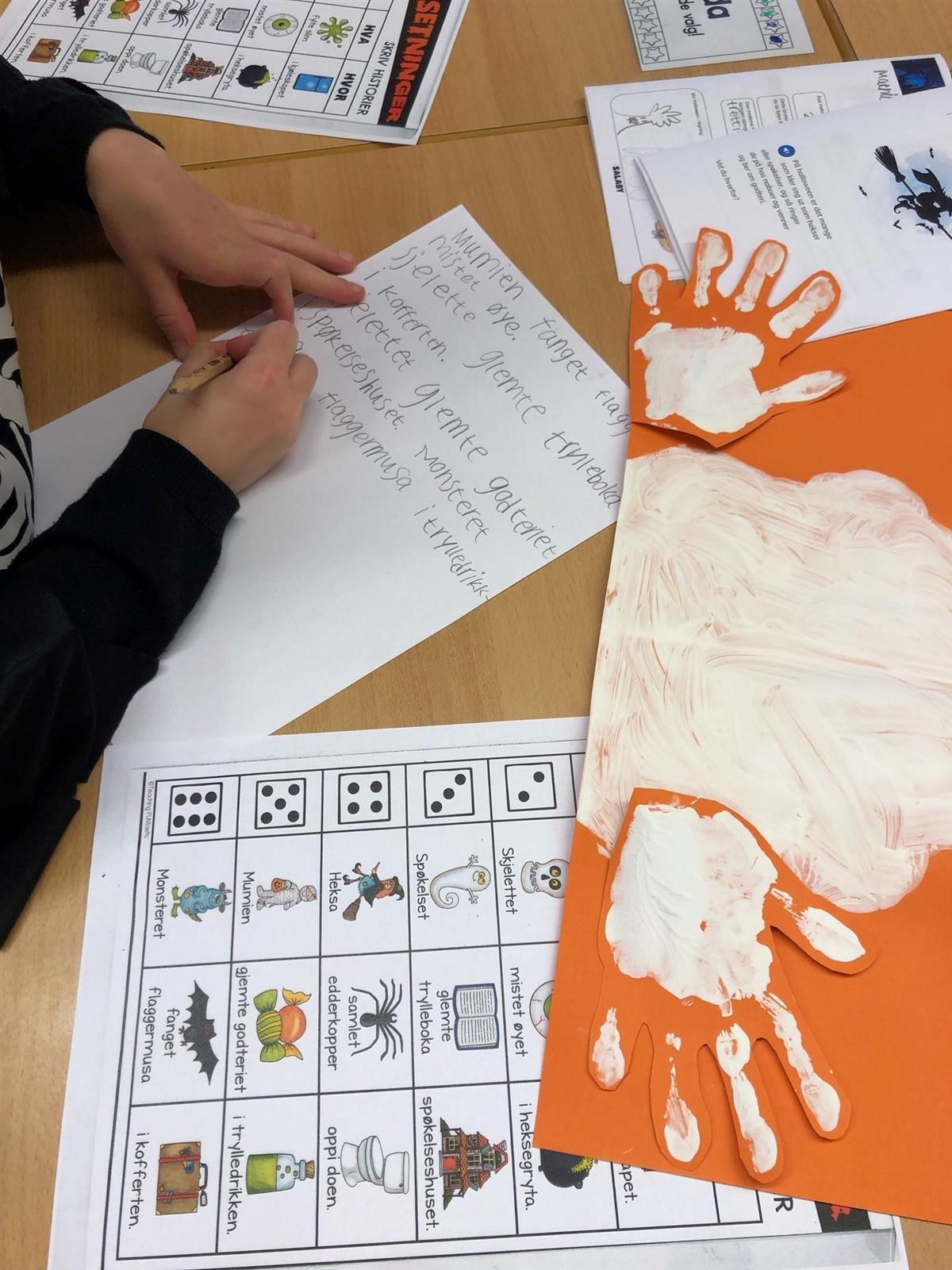 - Vi har lært om kristne tradisjoner som er over 2000 år gamle og sammenhengen mellom Halloween og Allehelgensaften. Elevene har jobbet med skumle stasjoner med rare setninger, les og forstå, quiz, puslespill, hentediktat, gresskarskjæring, Apple bobbing (for å se om du fikk kjærest før året var slutt), spøkelsesmaling og kost seg med deilige «gresskar»boller og muffins laget av foreldre og barn hjemme. Godteri ble det også. Skumle, frekke Katharina kom susende på feiekosten fra Blokksberg for å feire dagen sin med tvillingsø