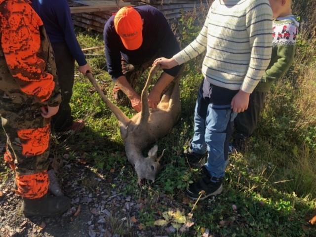 - Tre dyktige hunder og frem treffsikre jegere fikk ett kje og en bukk. Alle som ønsket fikk oppleve vomming og stekt hjerte på bålpanne. Dagen ble en lærerik opplevelse for både store og små, sier en strålende fornøyd kontaktlærer Cathrine L. Gjerde.