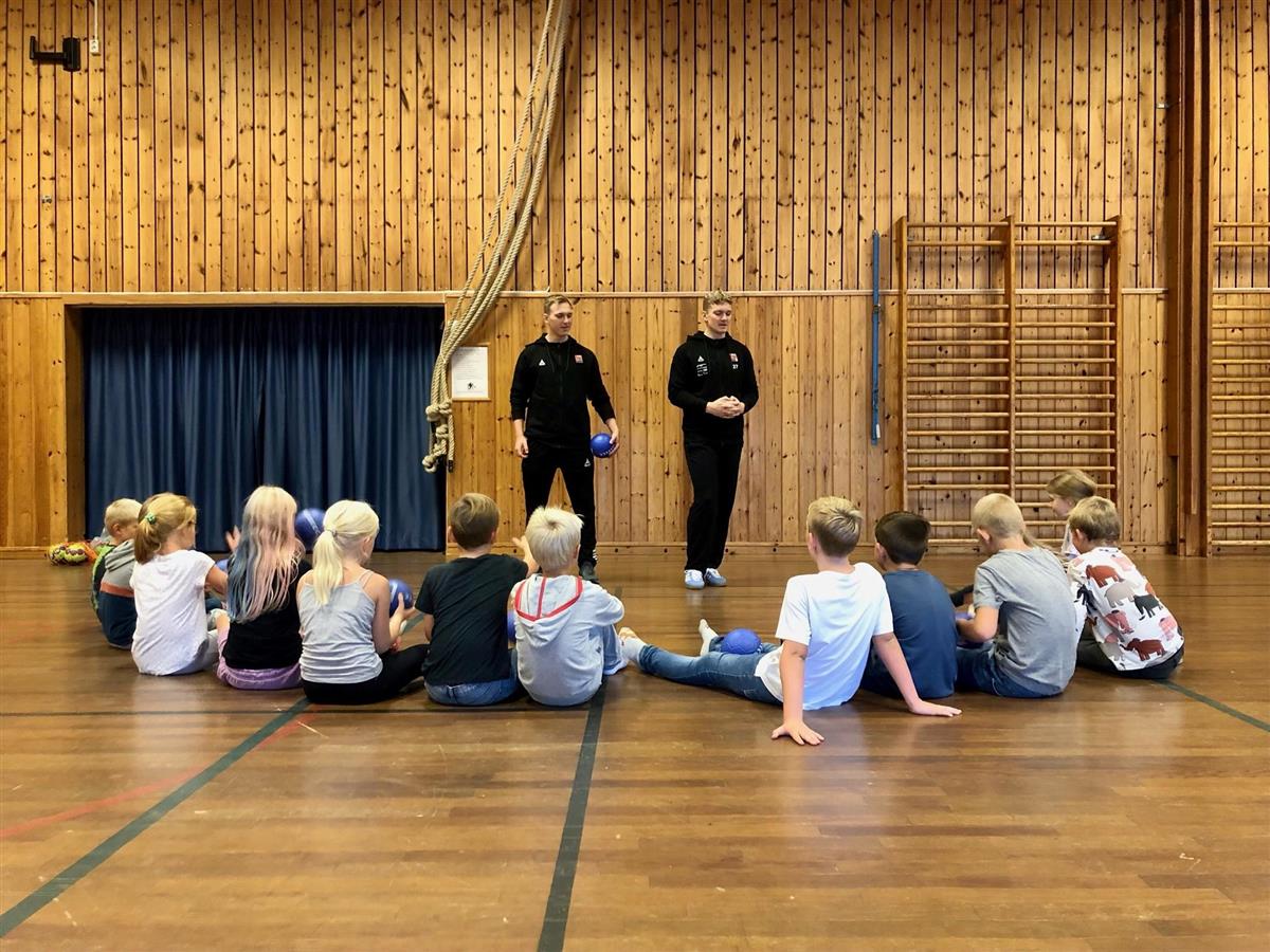 Sebastian L. Simonsen og Eivind André Kylland fra ØIF Arendal gjestet Nesheim i forbindelse med kampanjen "Kast ballen".
