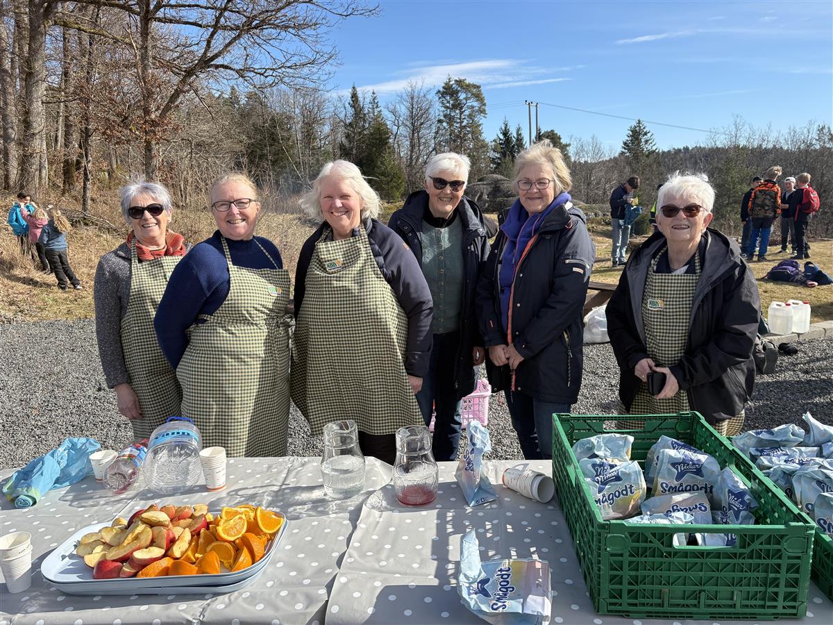 Bygdekvinnelaget serverte Nesheim-elevene lunsj. Her representert ved AnneMa Nyerød (f.v), Milly Grundesen, May Hansen, Inger Thunes, Hilda Skjulestad og Berit Moen.
