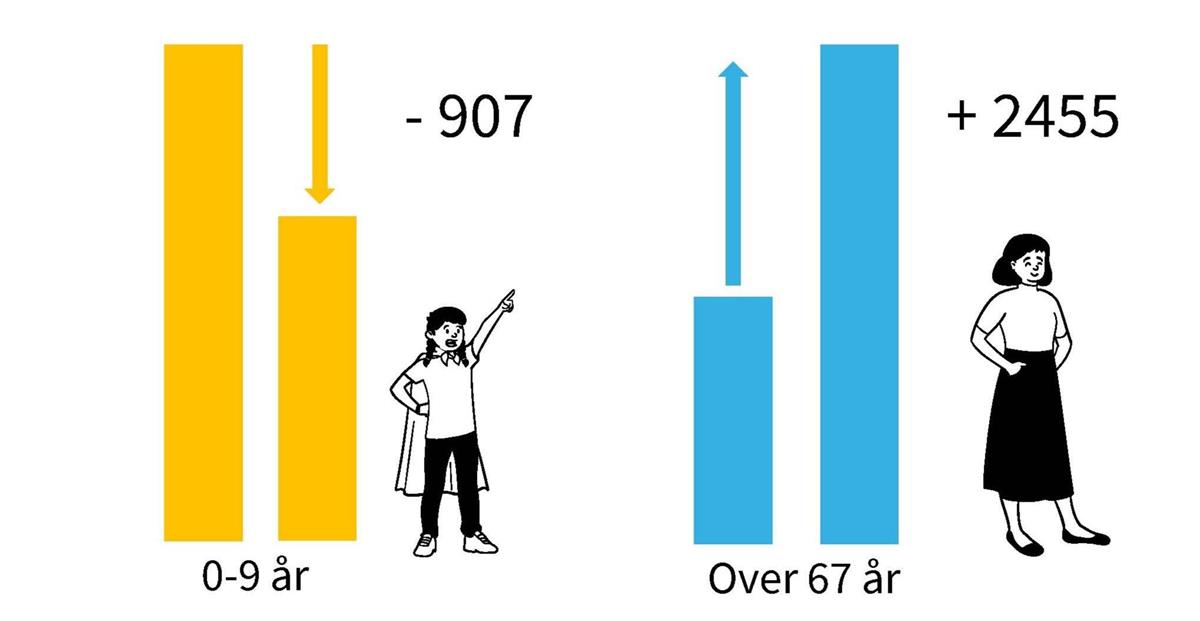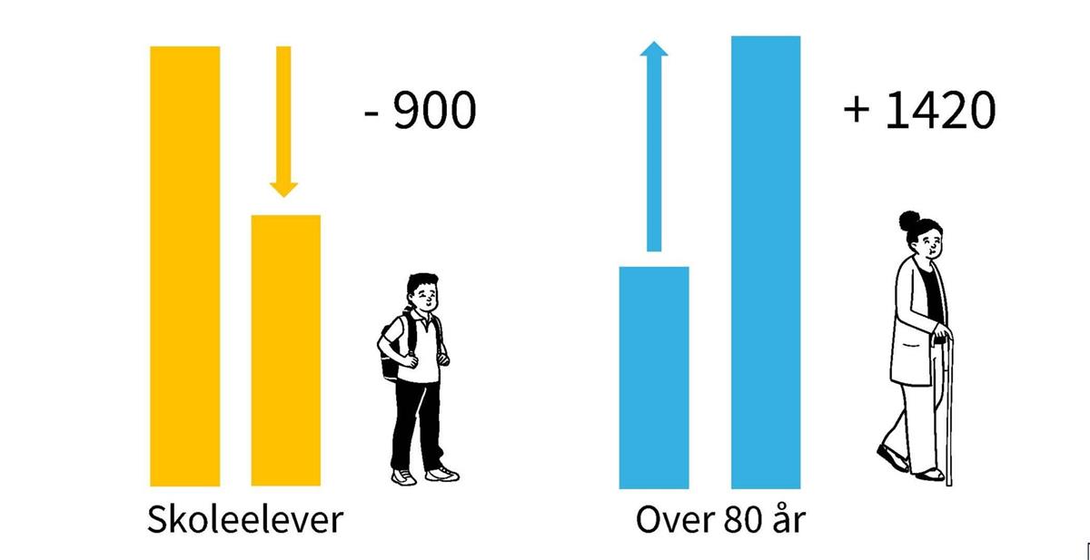 I årene framover vil det skje store endringer i befolkningssammensetningen. Det blir flere eldre innbyggere og færre barn og unge.
