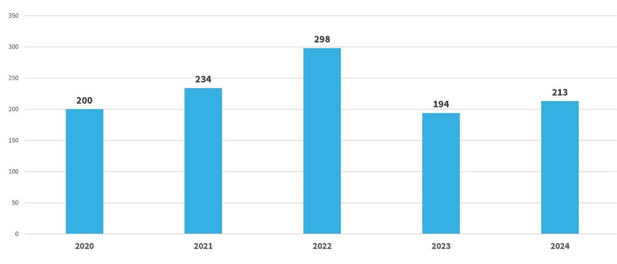 Tabellen under viser antall ferdigstilte boliger fra 2020 til 2024. I 2024 ble det ferdigstilt 213 nye boliger i Arendal. Vi henter tallene fra SSB og oppdaterer de årlig.