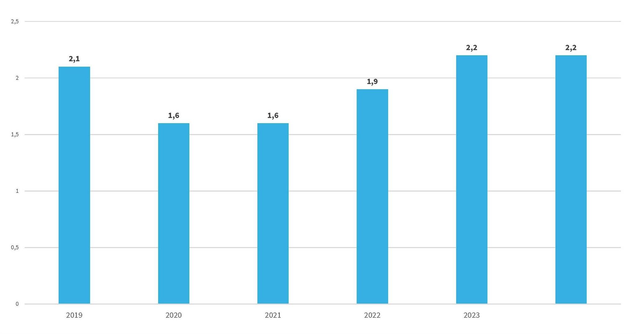 Totale klimagassutslipp for driften i Arendal kommune i 2024 var 5 198 tonn CO2e. Det har vært en økning i utslipp på 2,3% sammenlignet med 2023. Dette skyldes både bedre datakvalitet og økt forbruk av drivstoff og biogass.