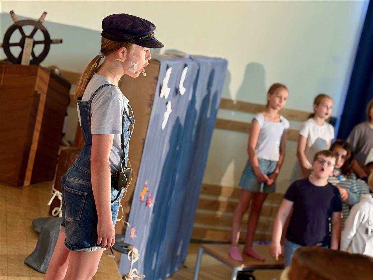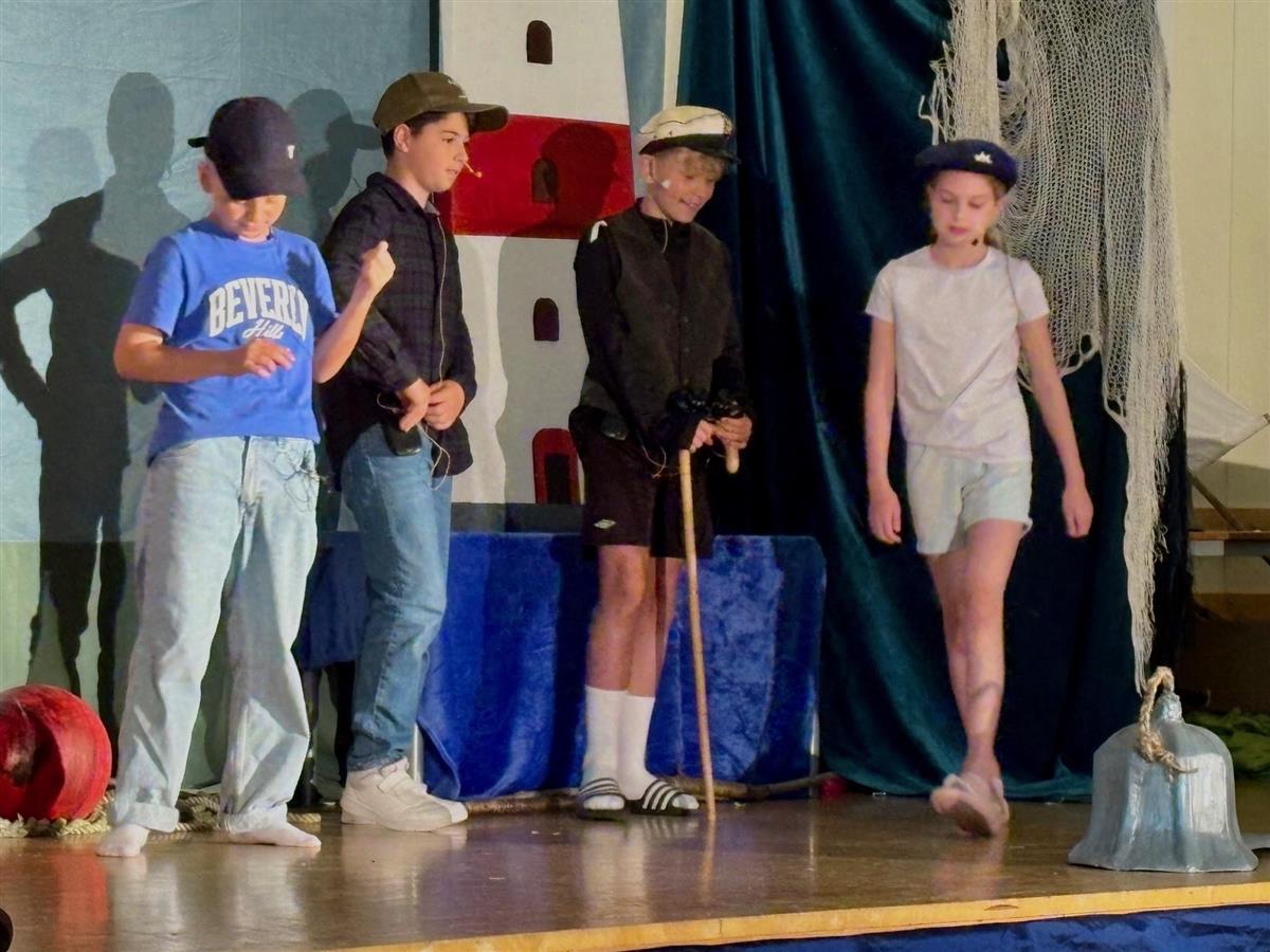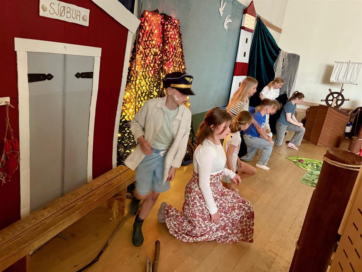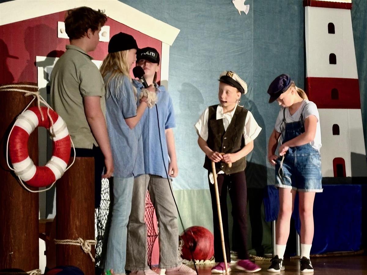 Feiende flott forestillingElevene på 5. trinn blåste publikum av banen da de satte opp forestillingen “Los-Reinert på tokt”.De siste ukene har 5. trinn øvd på en forestilling som heter “Los-Reinert på tokt”. Og tirsdag var det tid for å vise fram resultatet.Skuespillet er basert på bøkene til Siri E. Mohr, og det er tvers igjennom sørlandsk. Her var det både skuter, teiner, sjøbod, krabber, matroser og hummere. Elevene briljerte med både sang, skuespill og dans. Først var det alle elevene på barnetrinnet som fikk gleden av å se på. På kvelden var det familiene som var i salen. Og publikum var heftig begeistret!Forelder Marianne Pedersen Westbye var ansvarlig for kulissene og store deler av kostymene. Og det ble fantastisk! Vi er mektig imponert. Tusen takk til alle sammen - for en feiende flott forestilling! Sist endret 18.06.2025 08.32