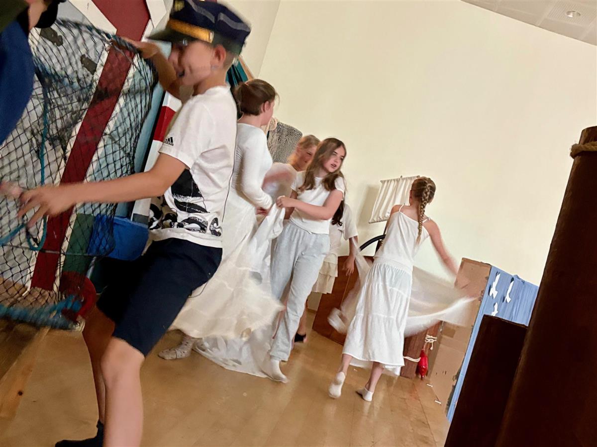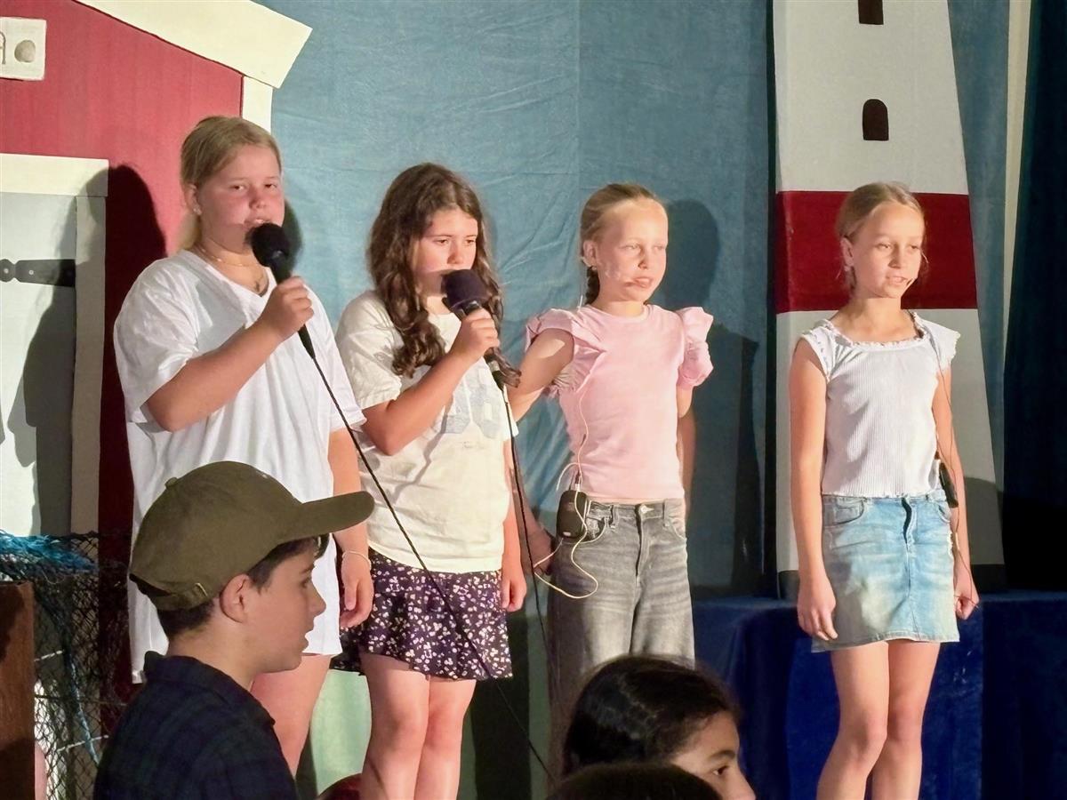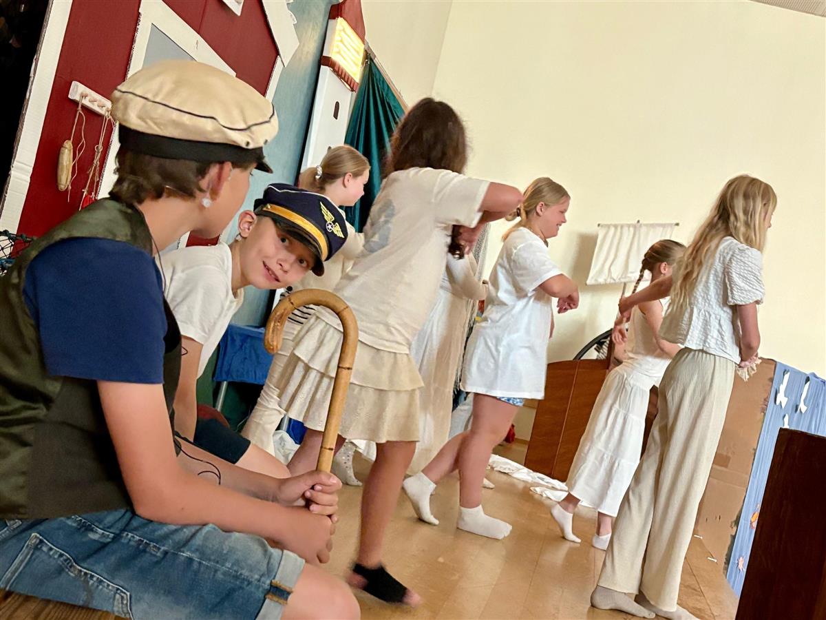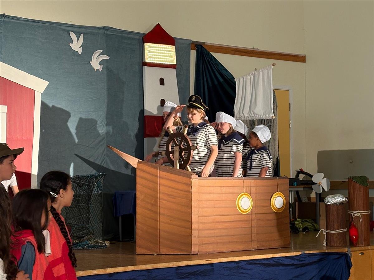 Feiende flott forestillingElevene på 5. trinn blåste publikum av banen da de satte opp forestillingen “Los-Reinert på tokt”.De siste ukene har 5. trinn øvd på en forestilling som heter “Los-Reinert på tokt”. Og tirsdag var det tid for å vise fram resultatet.Skuespillet er basert på bøkene til Siri E. Mohr, og det er tvers igjennom sørlandsk. Her var det både skuter, teiner, sjøbod, krabber, matroser og hummere. Elevene briljerte med både sang, skuespill og dans. Først var det alle elevene på barnetrinnet som fikk gleden av å se på. På kvelden var det familiene som var i salen. Og publikum var heftig begeistret!Forelder Marianne Pedersen Westbye var ansvarlig for kulissene og store deler av kostymene. Og det ble fantastisk! Vi er mektig imponert. Tusen takk til alle sammen - for en feiende flott forestilling! Sist endret 18.06.2025 08.32