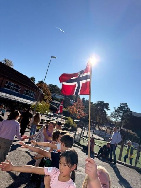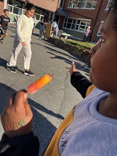 I dag løp altså elevene til inntekt for en god sak, i et aldeles nydelig høstvær. Faktisk var det riktig så varmt ute. Og da smakte det ekstra godt at FAU var på plass i skolegården, og belønnet alle barna med is etter “målgang”.