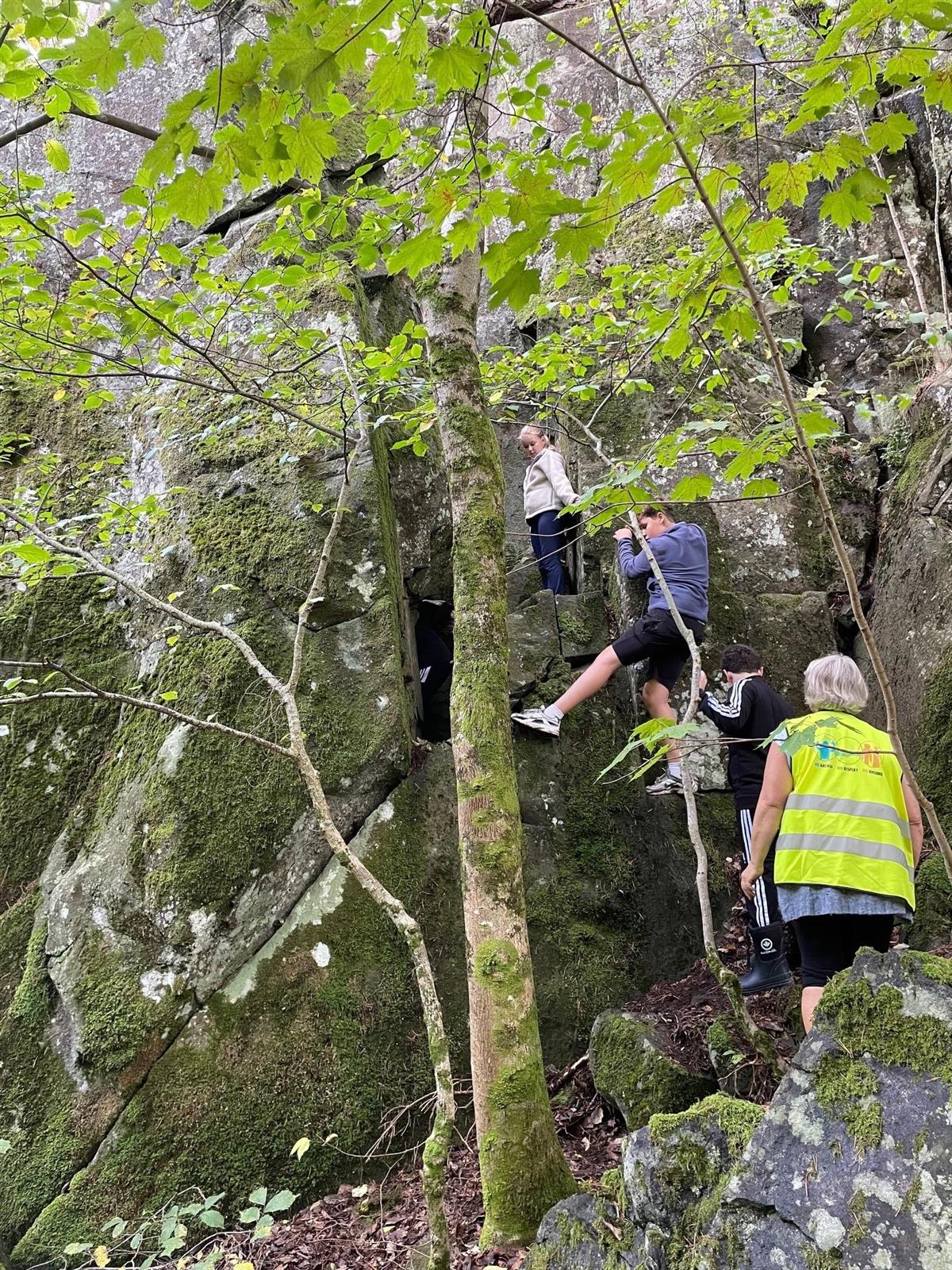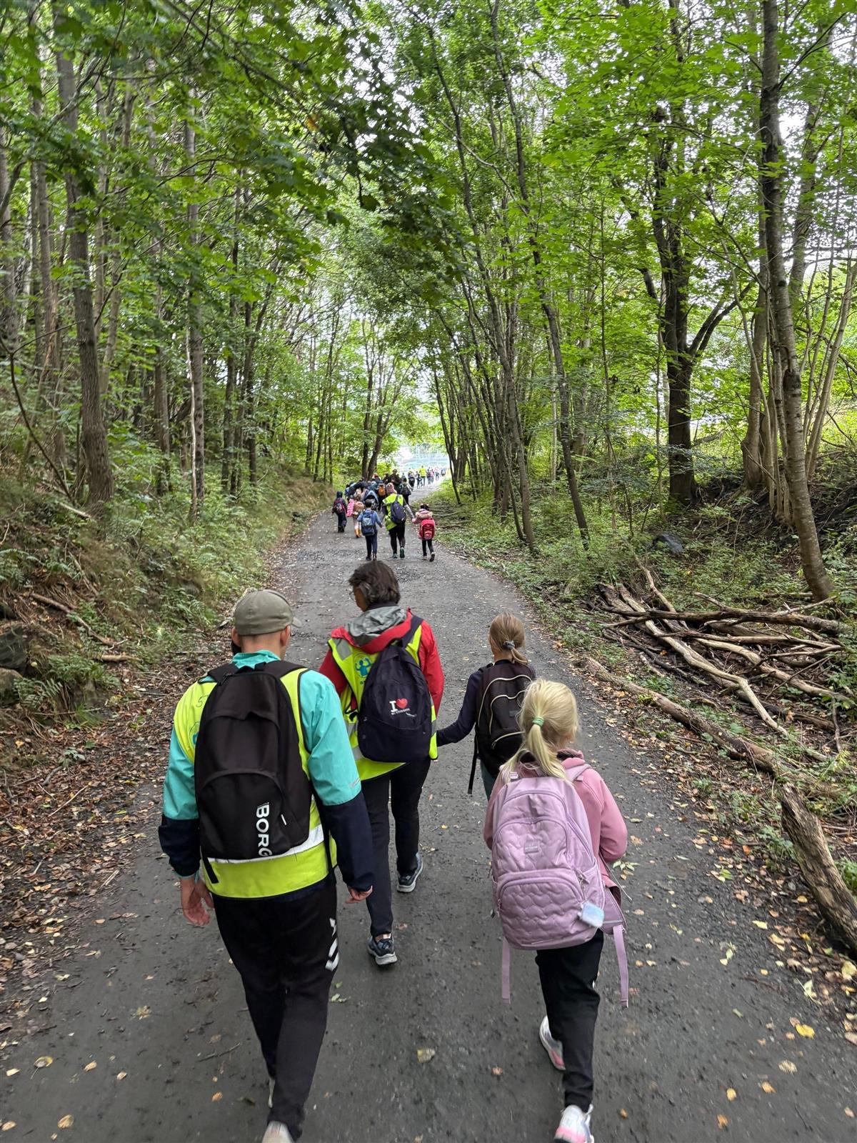 Når alle aktivitetene er gjennomført, er det matpause i det fri, før vi igjen vender tilbake til skolen i samlet flokk.
