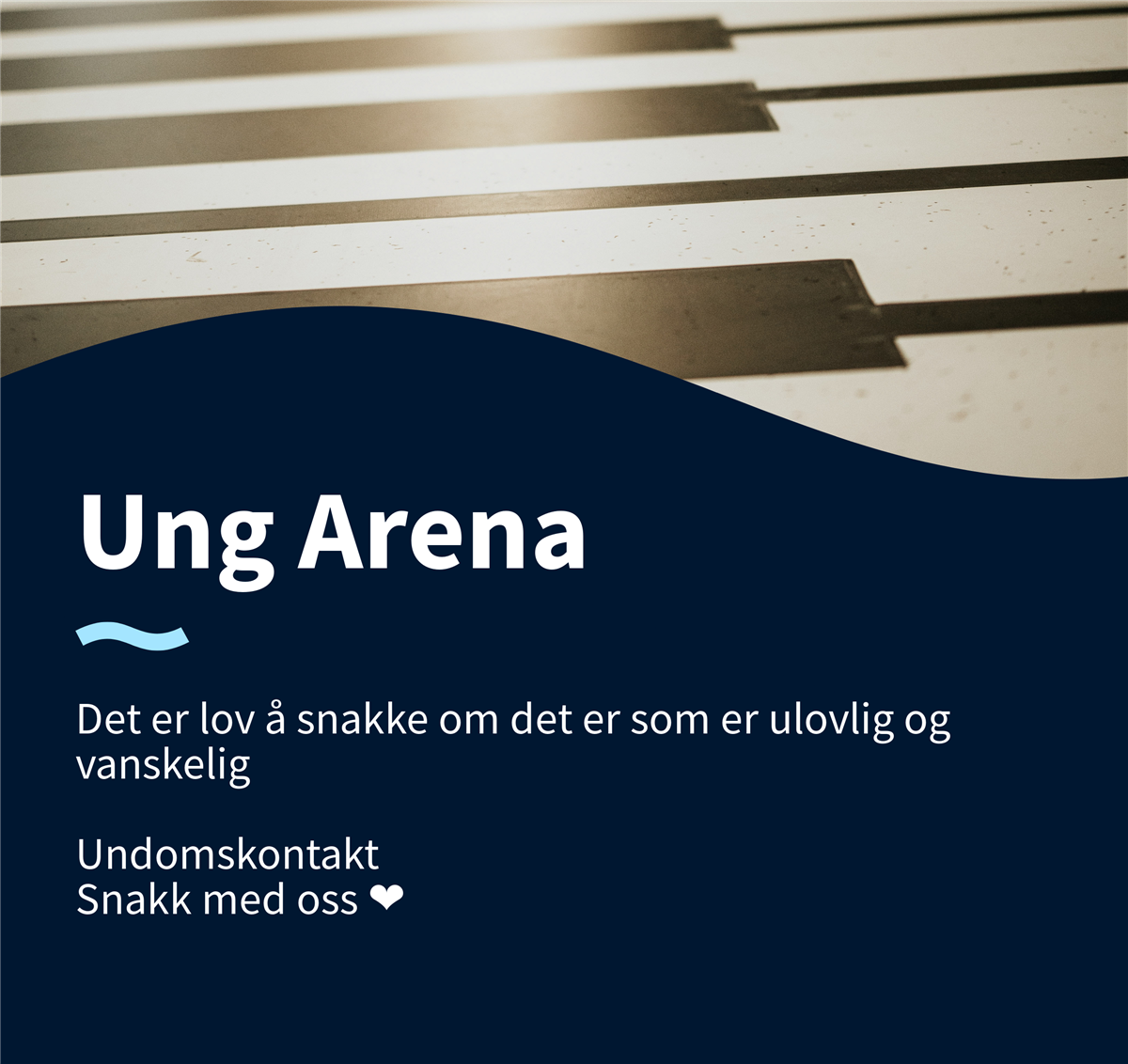Ung ArenaHos oss kan du snakke om det du ønsker selv! Ingen problemer er for store eller for små. For oss er ungdommen alltid i sentrum og vi er der hvis du trenger hjelp eller støtte. Vi tilbyr individuelle samtaler, gruppesamtaler, aktiviteter og mer til ungdom og unge voksne mellom 13 og 20 år. Vi har base på Kulturkammeret, men det er godt mulig du treffer på oss ute i byen også. Det er helt gratis og uforpliktende å komme til oss.Avtal time eller stikk innom!Du velger selv om du vil avtale time eller bare droppe innom i åpningstidene våre. Du kan kontakte oss telefon og e-post. Når du tar kontakt med oss vil vi bli enige om hva som er riktig hjelp for deg basert på dine ønsker. Vi har også god oversikt over tjenester og tilbud i Arendal, og kan hjelpe deg med å komme i kontakt med dem dersom du har behov for det.ÅpningstiderTirsdag: kl. 10–18Annenhver onsdag (oddetalls uker): kl. 10–18Fredag: kl. 10–16Vi er fleksible og kan møte deg utenfor disse åpningstidene ved avtale. Sist endret 28.03.2025 15.31