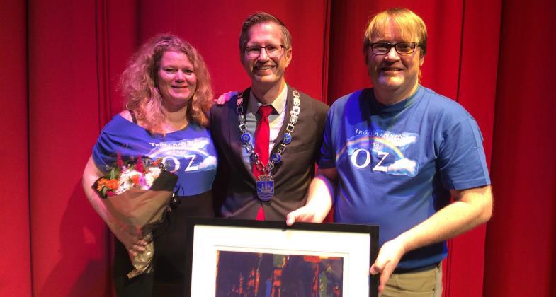 Marianne Løge og Leif Gerhard Andersen jr, kanskje bedre kjent som Liffe, fikk Arendal kommunes kulturpris for 2016 etter premieren på Arendal Musikkteater oppsetning av "Trollmannen fra Oz" på kulturhuset torsdag 7.april.