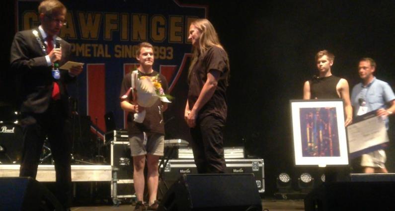 Torstensen er gitarist i rockebandet Clawfinger og fikk prisen av ordfører Robert Cornels Nordli før Clawfingers konsert på Canal Street fredag 27.juli.